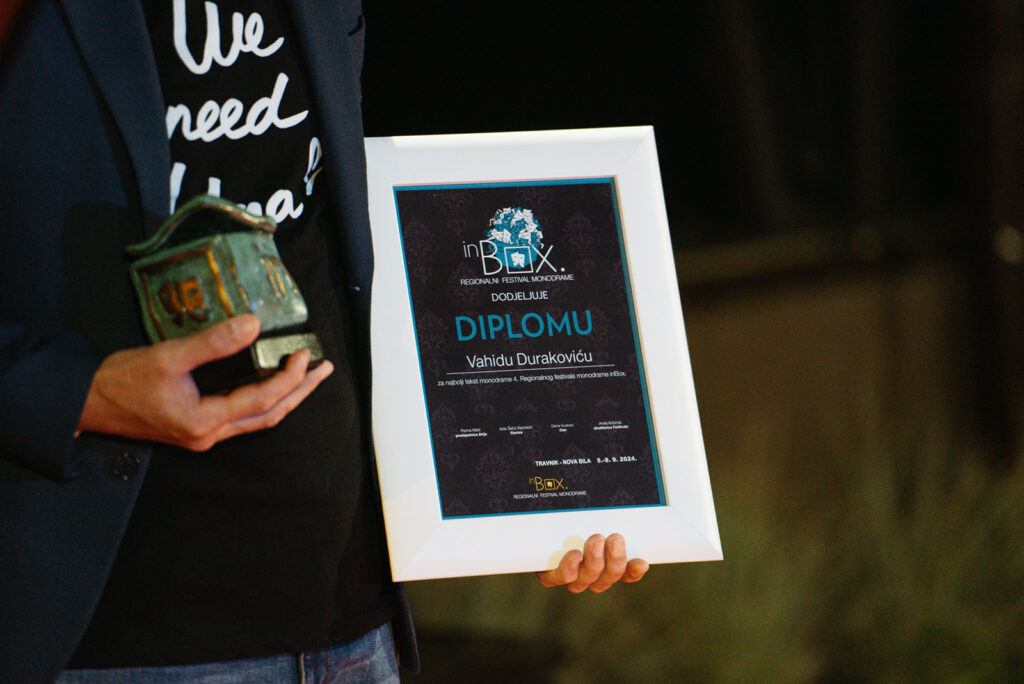 Tekstom „Prodavnica budućnosti“ osvojio je nagradu za najbolji tekst monodrame na „inBox“ festivalu 2021. godine. Po nagrađenom tekstu producirana je predstava “Izbori(se)!”.